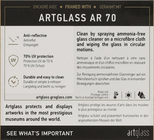 Le verre antireflet magnifie la profondeur des photos et retranscrit une qualité de couleur optimale ! Le verre antireflet élimine 99% des reflets. ARTGLASS est un spécialiste du verre depuis plus de 60 ans et est présent dans la plupart des musées !